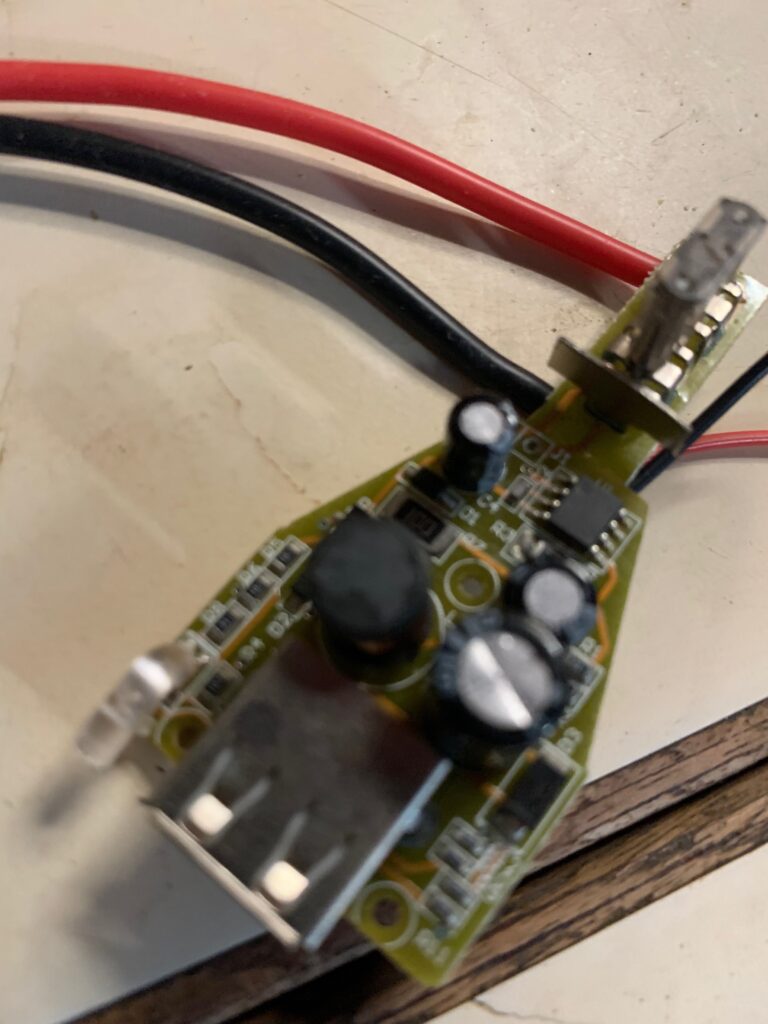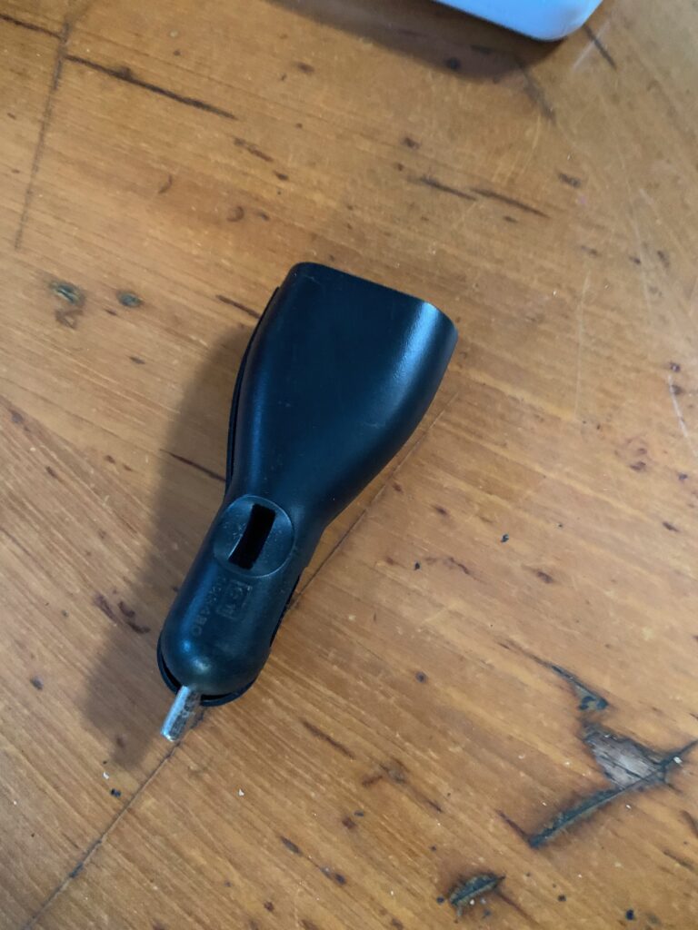 I noticed the little microcontroller I built to monitor the engine temps had failed, on closer inspection I found that the power supply was shot. Another failure. I don’t think they like the boat life. They convert 12v DC to 5v and I had to conclude there’s some nasty voltage spikes going on when I start the engine or run the bow thruster and they perhaps need some protection. I didn’t have any replacements, but it dawned on me I have a load of old cigar lighter-USB adapters like the kind shown below.