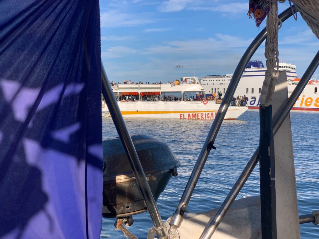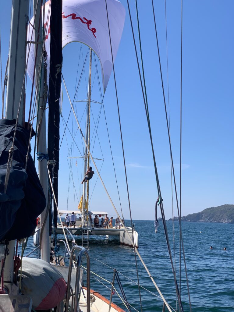 In Zi there is a large catamaran called Picante (Hot/Spicy) that takes a gang of tourists out each day for a trip around the bay and out to sea to watch the sunset. One of their tricks when there’s a bit of wind is to let guests fly on their Spinnaker. At first I couldn’t understand why they had chosen my boat to be the hazard that these excitement seeking swingers might hit, but later I realised they where tying their stern to a mooring buoy not far upwind from me.