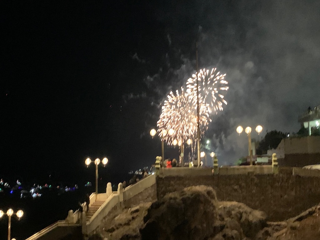 We skipped on most of the Carnaval (Mexican spelling), but went to the fireworks. We had to queue to get a ticket to enter the Malecon, it was very busy and in the end we left and watched the fireworks from the cliffside further away.