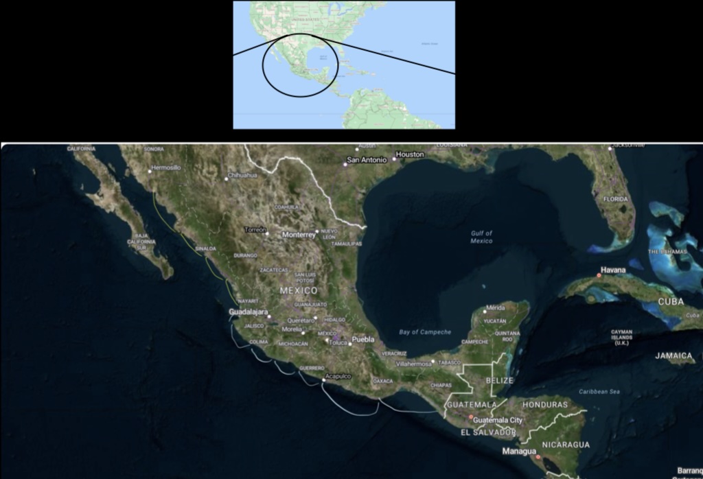 You can see above how far it is from Chiapas, on the border with Guatemala all the way up the coast (into the wind and waves) to Guaymas / San Carlos halfway up the sea of Cortez.