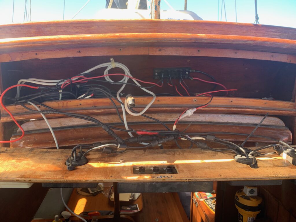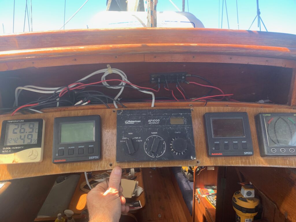The installation was simple, except that the Raymarine control unit wouldn’t drive the clutch solenoid. When engaged the 12v output dropped to 5v and there was no solenoid action. I called Raymarine and explained it all, they thought it was probably a faulty unit and could I return it? The prospect of getting the unit back to the UK was not appealing, I had a spare automotive relay which I keep for the Engine electrics, once wired in, the clutch engaged. I took the boat out for a spin, and Voila, it worked.