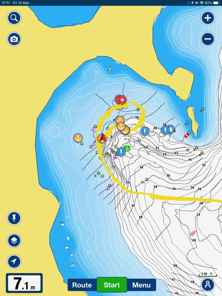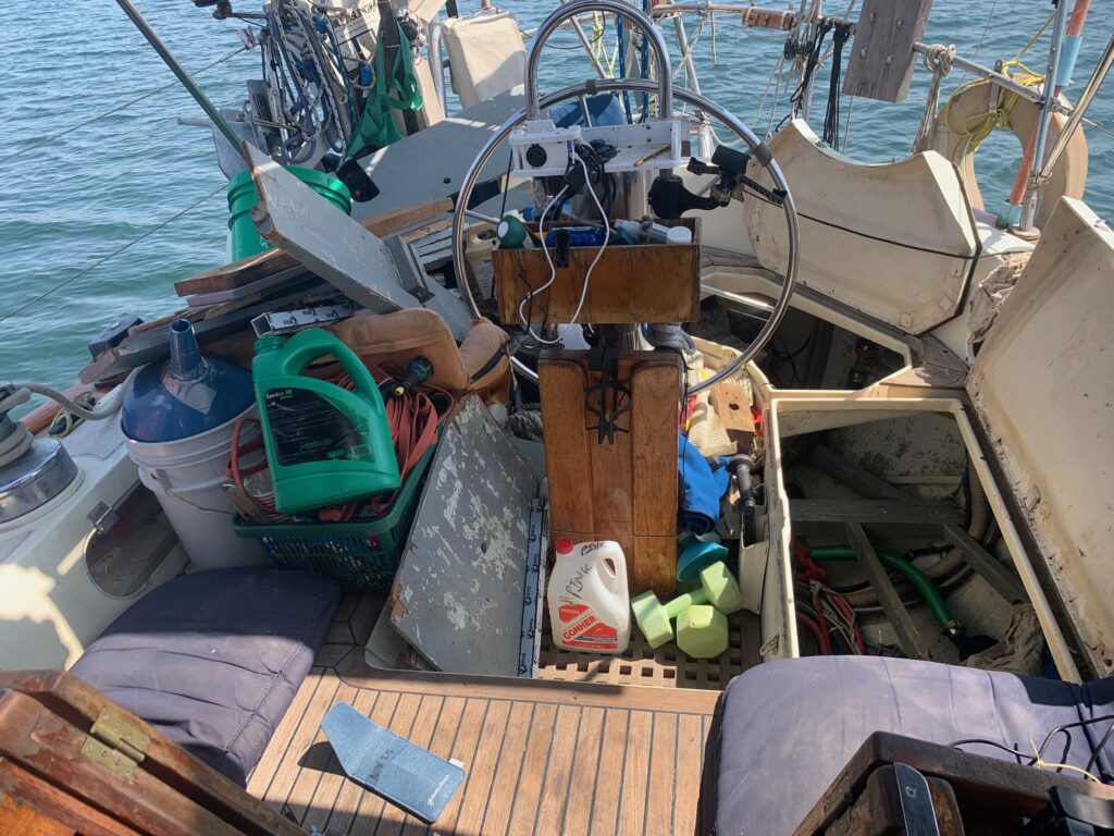With the two parcels on board I moved out of the harbour to the Stone Island Anchorage, where I could chill, do some swimming and fit the autopilot.