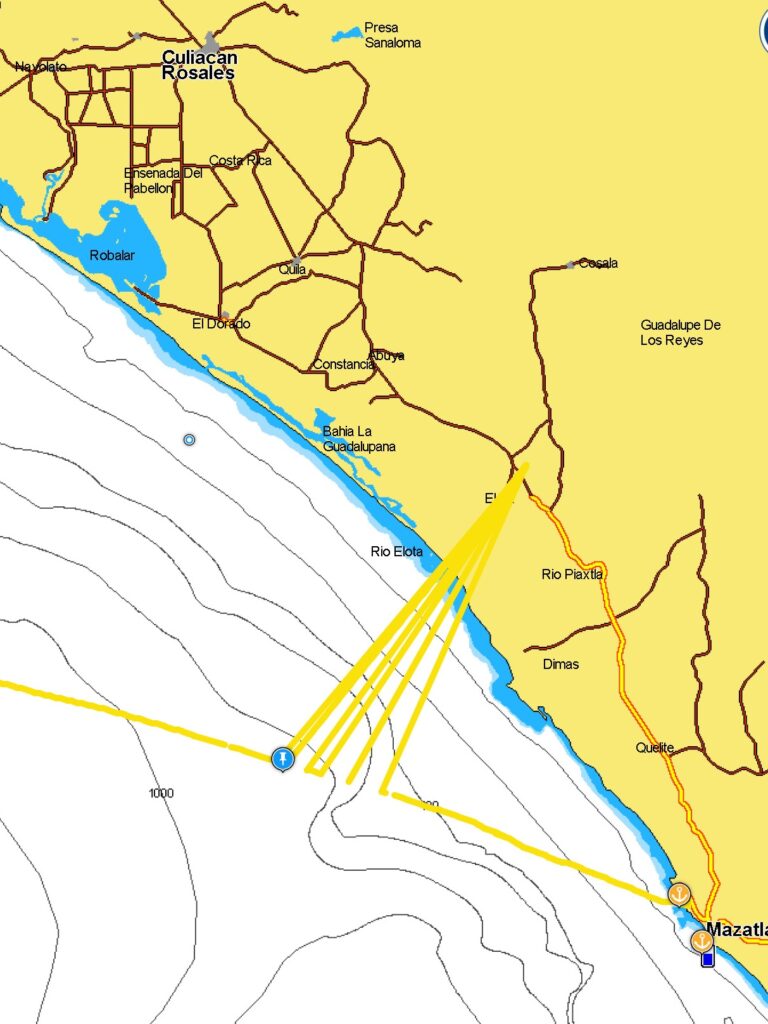 And quite a few people have commented on various Mexican sailing groups how the GPS has been playing up. Of course it could be solar activity, but two independent devices on board did very weird things this morning, Instead of putting me 70 miles west of the mainland, it kept putting me somewhere just south of Culiacán in Sonora, Culiacán being the home of El Chapo’s cartel. I’m glad the GPS isnt driving the autopilot.